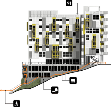 The types developed by the team's architects have a system of expandable, switchable and adaptable plans for the specific needs of residents.